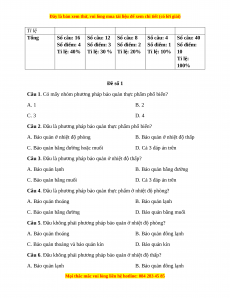 Câu 1. Có mấy nhóm phương pháp bảo quản thực phẩm phổ biến? A. 1 B. 2 C. 3 D. 4
