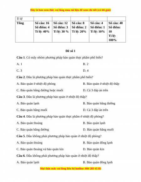 Đây là bản xem thử, vui lòng mua tài liệu để xem chi tiết (có lời giải)