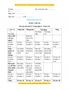 Ma trận đề cuối kì 1 Công nghệ 6 – Chân trời