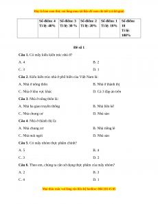 Câu 2. Kiểu kiến trúc nhà ở phổ biến của Việt Nam là: A. Nhà ở nông thôn B. Nhà ở thành thị C. Nhà ở khu vực khác D. Cả 3 đáp án trên