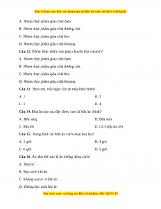 Câu 15. Trung bình các bữa ăn cách nhau bao lâu? A. 2 giờ B. 4 giờ C. 6 giờ D. 5 giờ