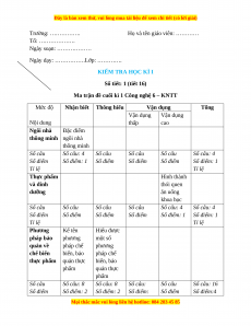 Ma trận đề cuối kì 1 Công nghệ 6 – KNTT