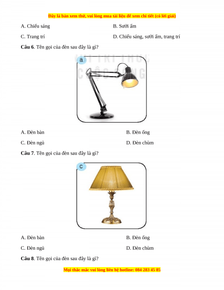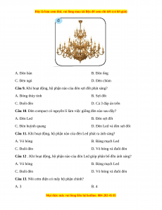 Câu 6. Tên gọi của đèn sau đây là gì? A. Đèn bàn B. Đèn ống C. Đèn ngủ D. Đèn chùm