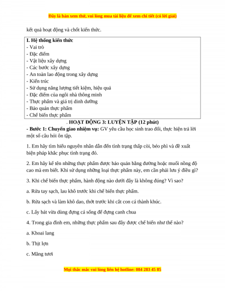 Củng cố kiến thức về nhà ở, bảo quản và chế biến thực phẩm.