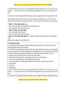 và chế biến thực phẩm và yêu cầu học sinh trả lời một số câu hỏi liên quan.