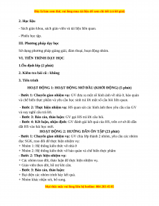 - Sách giáo khoa, sách giáo viên và tài liệu liên quan. - Phiếu học tập.