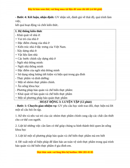 Củng cố kiến thức về nhà ở, bảo quản và chế biến thực phẩm.