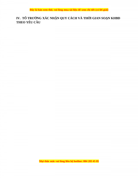 IV. TỔ TRƯỞNG XÁC NHẬN QUY CÁCH VÀ THỜI GIAN SOẠN KHBD