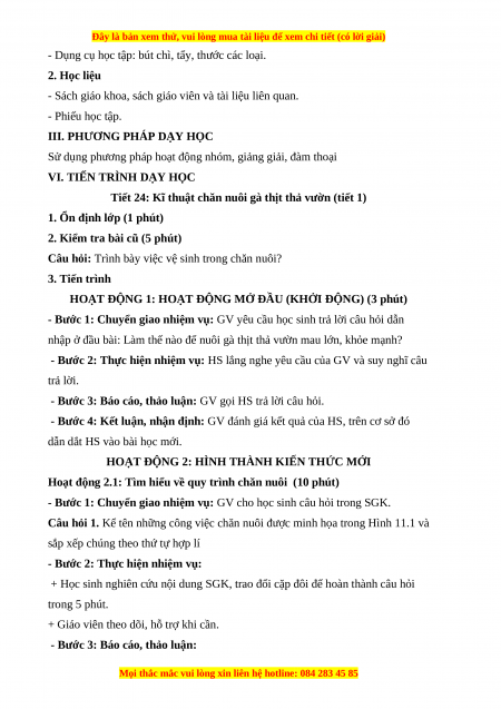 Giáo án Công nghệ 7 Bài 11 (Chân trời sáng tạo): Kĩ thuật chăn nuôi và thịt thả vườn