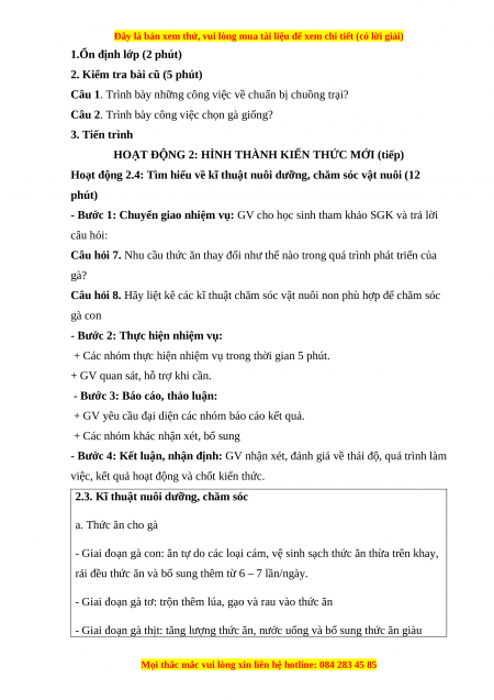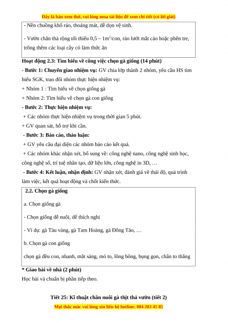 Tiết 25: Kĩ thuật chăn nuôi gà thịt thả vườn (tiết 2)