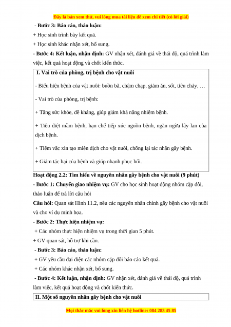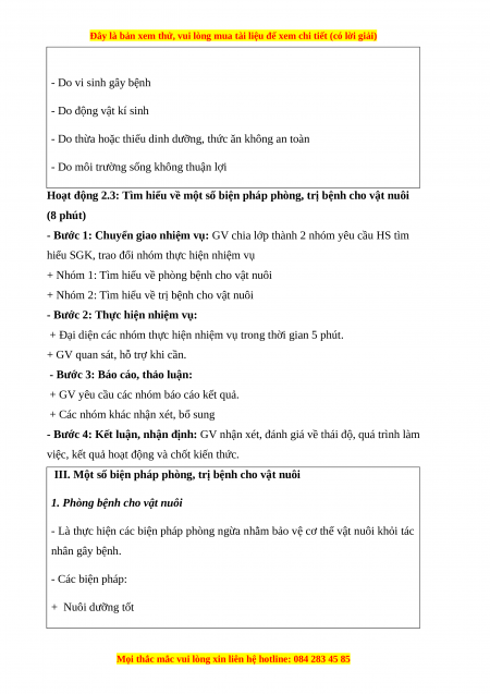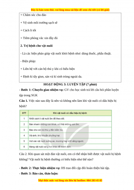 Hoạt động 2.3: Tìm hiểu về một số biện pháp phòng, trị bệnh cho vật nuôi