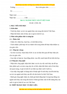 Bài 12. NGÀNH THỦY SẢN Ở VIỆT NAM Số tiết 1 (Tiết: 29)