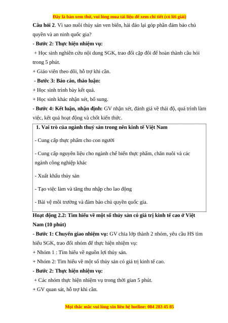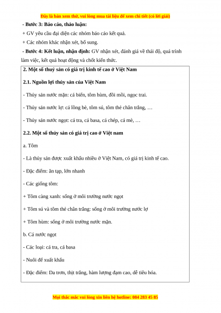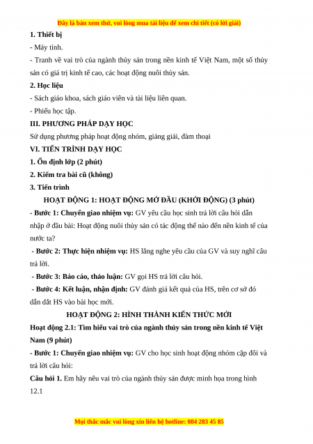 sản có giá trị kinh tế cao, các hoạt động nuôi thủy sản. 2. Học liệu