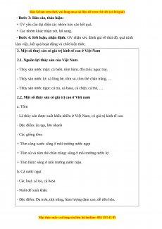 Hoạt động 2.2: Tìm hiểu về một số thủy sản có giá trị kinh tế cao ở Việt Nam (10 phút)