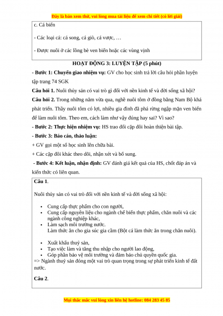 nhập ở đầu bài: Hoạt động nuôi thủy sản có tác động thế nào đến nền kinh tế của nước ta?