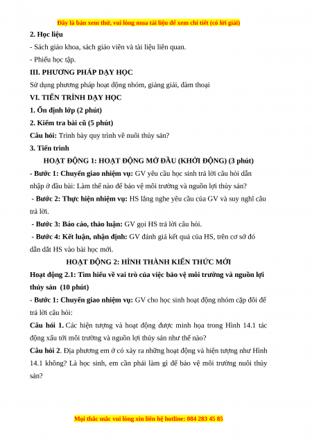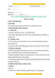 Giáo án Công nghệ 7 Bài 14 (Chân trời sáng tạo): Bảo vệ môi trường và nguồn lợi thủy sản