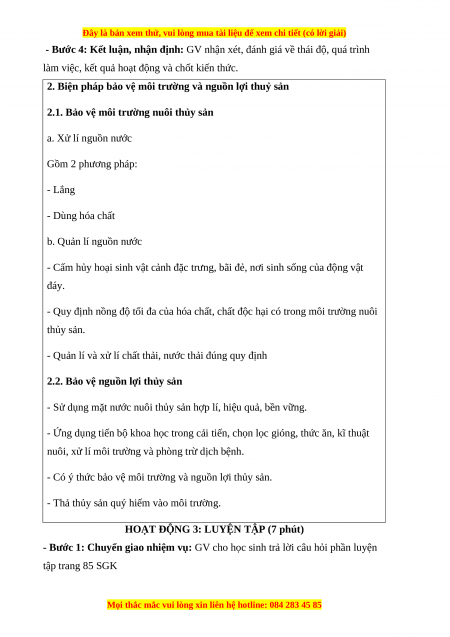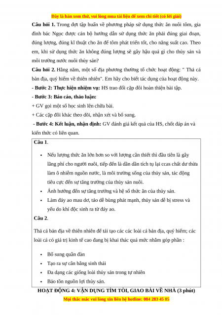 nhập ở đầu bài: Làm thế nào để bảo vệ môi trường và nguồn lợi thủy sản?