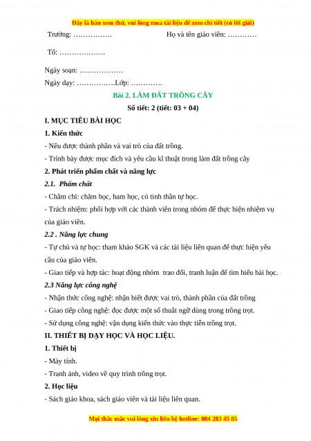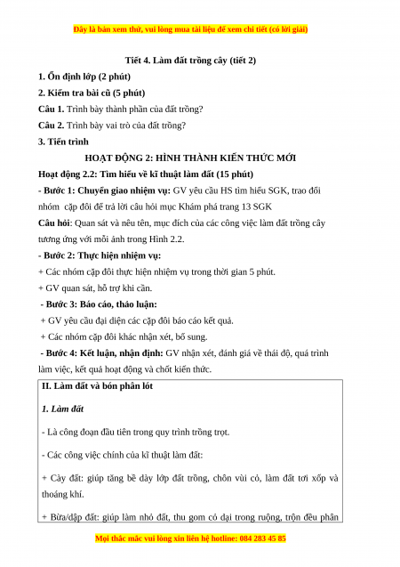 Giáo án Công nghệ 7 Bài 2 (Kết nối tri thức): Làm đất trồng cây
