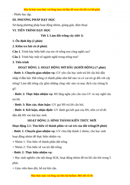 Hoạt động 2.1: Tìm hiểu về thành phần và vai trò của đất trồng(29 phút)