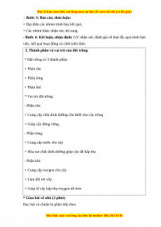 + Nhóm 1: Tìm hiểu về thành phần đất trồng