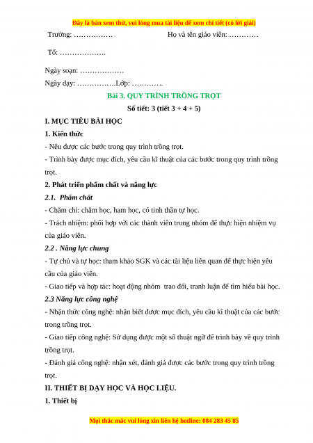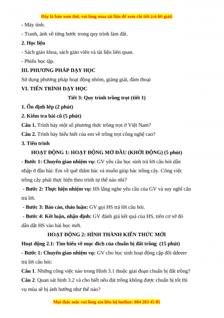 Giáo án Công nghệ 7 Bài 3 (Chân trời sáng tạo): Quy trình trồng trọt