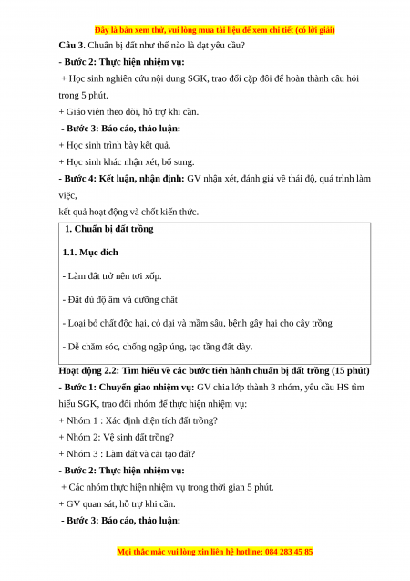 Câu 2. Trình bày các bước tiến hành chuẩn bị đất trồng? 3. Tiến trình