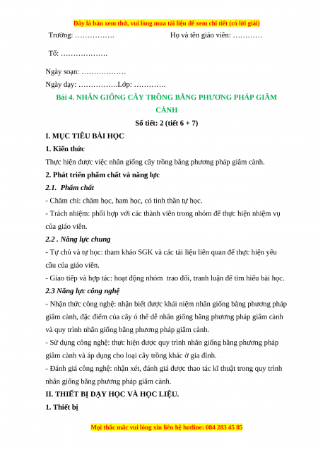 biến ở địa phương, trường hợp giâm cành phát triển không tốt. 2. Học liệu