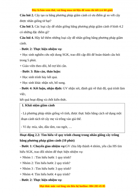 Giáo án Công nghệ 7 Bài 4 (Chân trời sáng tạo): Nhân giống cây trồng bằng phương pháp châm cành