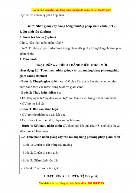 Hoạt động 2.3: Thực hành nhân giống cây rau muống bằng phương pháp