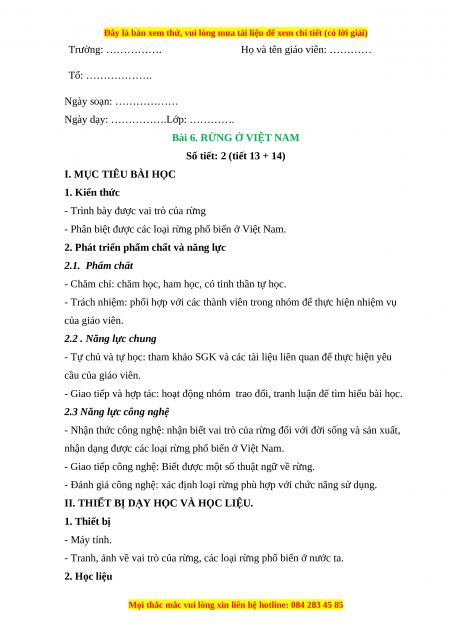 Giáo án Công nghệ 7 Bài 6 (Chân trời sáng tạo): Rừng ở Việt Nam