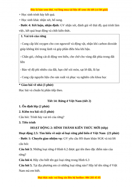 Hoạt động 2.1: Tìm hiểu về vai trò của rừng (32 phút)