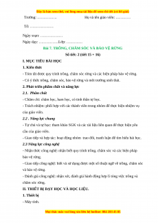 Giáo án Công nghệ 7 Bài 7 (Chân trời sáng tạo): Trồng, chăm sóc và bảo vệ rừng