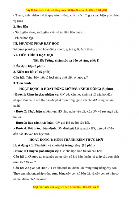 - Tranh, ảnh, video mô tả quy trình trồng, chăm sóc rừng và các biện pháp bảo vệ rừng. 2. Học liệu