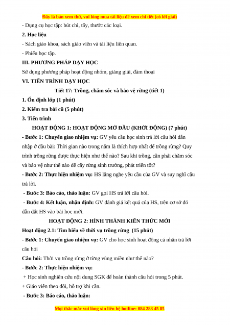 Tiết 17: Trồng, chăm sóc và bảo vệ rừng (tiết 1)