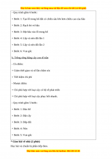 + Chỉ phù hợp với loại cây phục hổi nhanh. - Quy trình gồm 5 bước: + Bước 1: Đào hố + Bước 2: Đặt cây + Bước 3: Đắp đất + Bước 4: Nén + Bước 5: Vun gốc