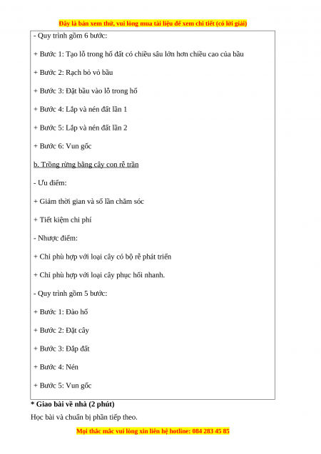 - Nhận thức công nghệ: nhận biết quy trình trồng rừng.