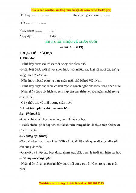 Giáo án Công nghệ 7 Bài 9 (Kết nối tri thức): Giới thiệu về chăn nuôi