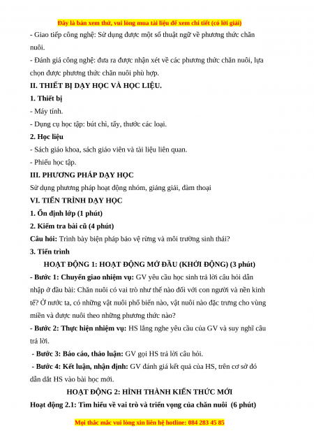 - Giao tiếp công nghệ: Sử dụng được một số thuật ngữ về phương thức chăn nuôi.