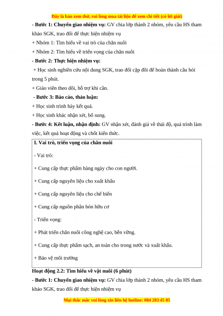 Hoạt động 2.1: Tìm hiểu về vai trò và triển vọng của chăn nuôi (6 phút)
