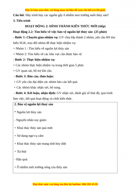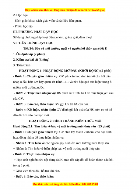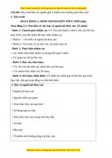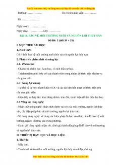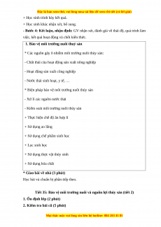 Giáo án Công nghệ 7 Cánh diều Bài 14: Bảo vệ môi trường nuôi và nguồn lợi thủy sản