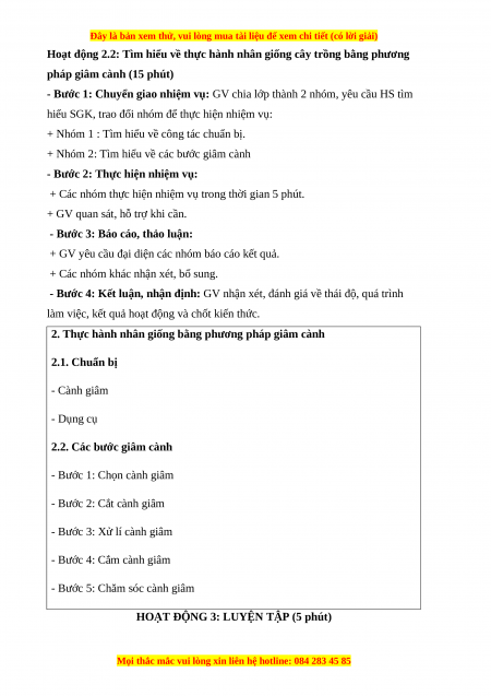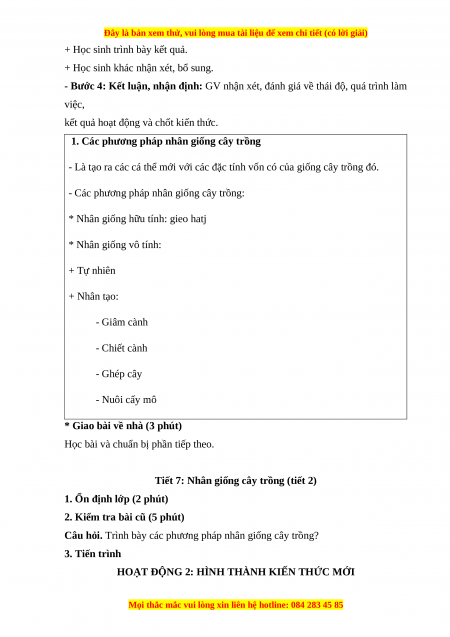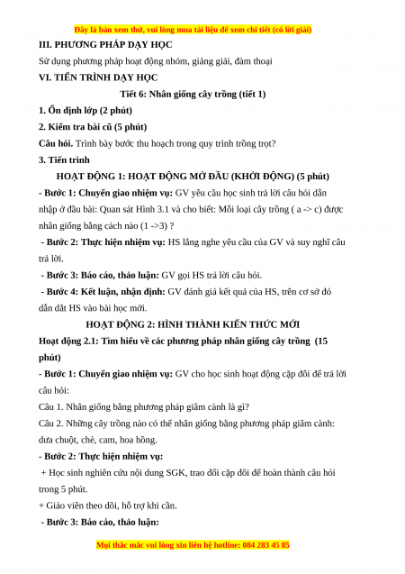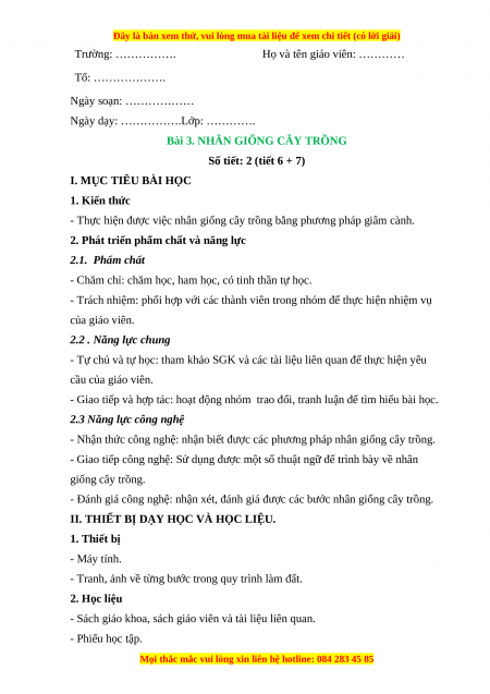Giáo án Công nghệ 7 Cánh diều Bài 3: Nhân giống cây trồng
