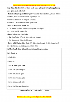 - Bước 1: Chuyển giao nhiệm vụ: GV yêu cầu học sinh thực hiện nhiệm vụ