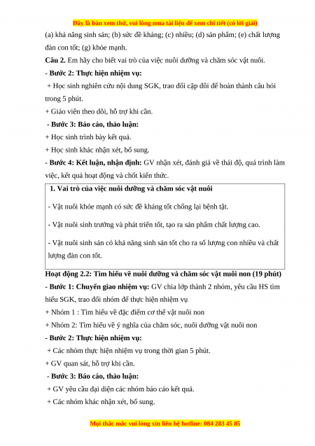 Câu 2. Em hãy cho biết vai trò của việc nuôi dưỡng và chăm sóc vật nuôi.