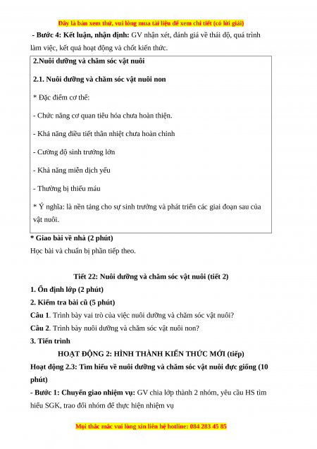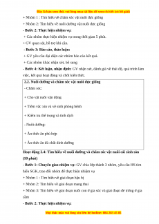 Hoạt động 2.2: Tìm hiểu về nuôi dưỡng và chăm sóc vật nuôi non (19 phút)
