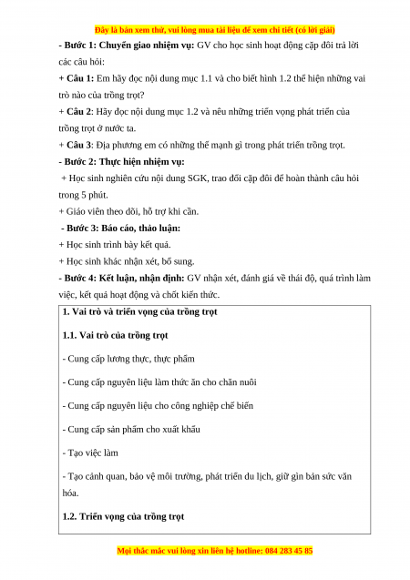 + Câu 2: Hãy đọc nội dung mục 1.2 và nêu những triển vọng phát triển của trồng trọt ở nước ta.