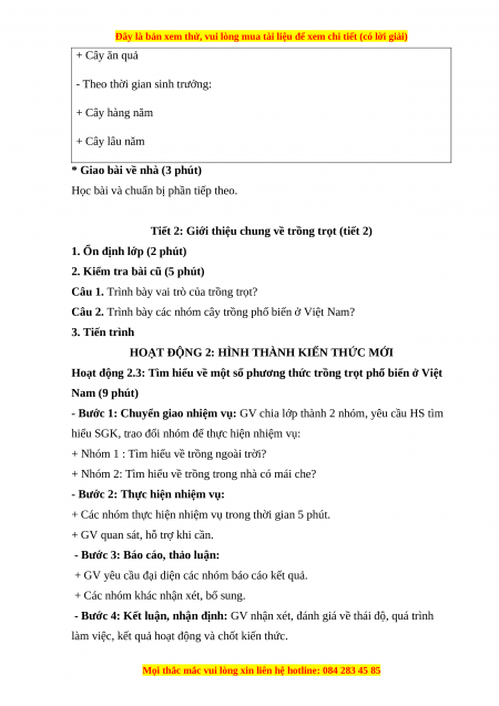 Tiết 2: Giới thiệu chung về trồng trọt (tiết 2)
