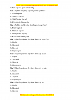 Câu 7. Cây trồng nào sau đây thuộc nhóm cây ăn quả: A. Cây lúa B. Cây cà rốt C. Cây xoài D. Cây mồng tơi