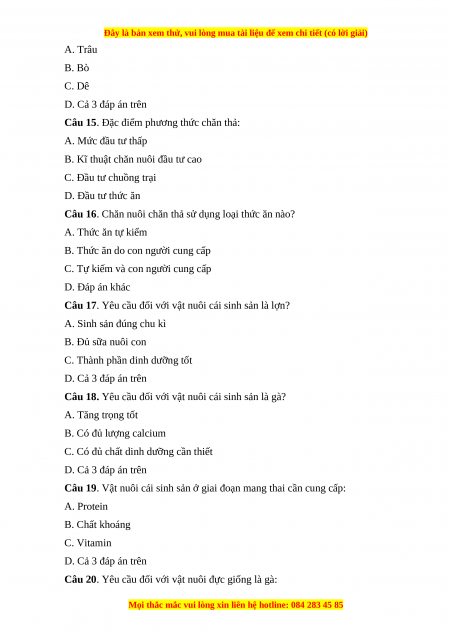 Câu 13. Việt Nam có mấy phương thức chăn nuôi? A. 1 B. 2 C. 3 D. 4