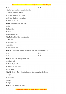 Câu 11. Mỗi loại thuốc phù hợp với: A. 1 loại bệnh B. Nhiều loại bệnh C. 1 hoặc vài loại bệnh D. Vài bệnh