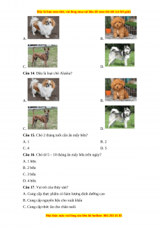 Câu 16. Chó từ 5 – 10 tháng ăn mấy bữa trên ngày?
